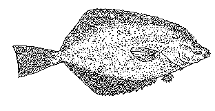 Pacific Halibut is the largest Flatfish in our area. They are found from the Sea of Japan to the Bering Sea and to Santa Rosa Island. Pacific Halibut lives on a variety of bottom types; young near the shore and adults deeper to about 3600 feet.
